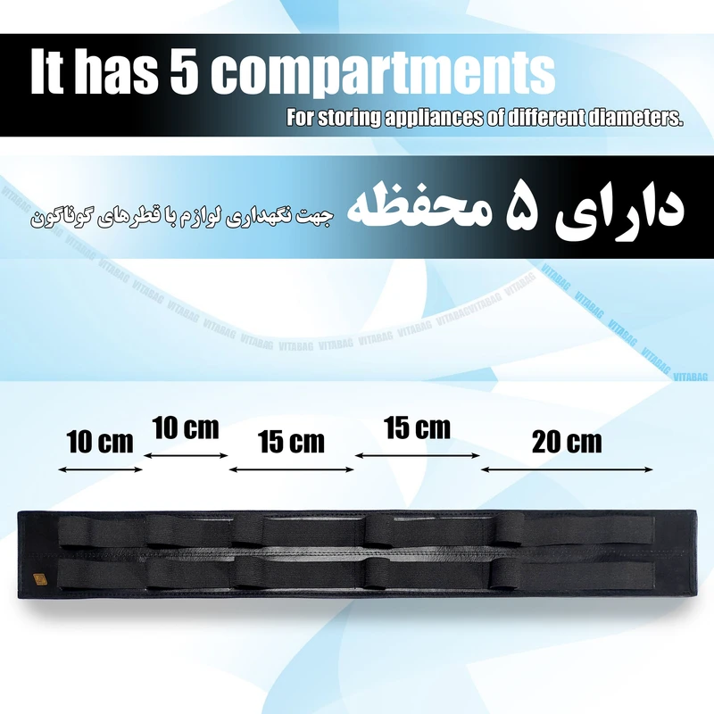چسبندگی قوی بر روی نمد / دارای 5 محفظه با ابعاد متفاوت مناسب ظروف مختلف
