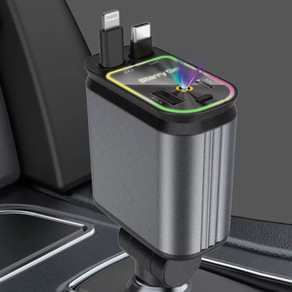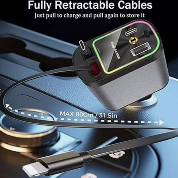 ویژگی: شارژ فست به همراه کابل جمع شونده یک متری تایپ c و آیفون و پورت شارژ usb و تایپ c و لیزر کهکشانی