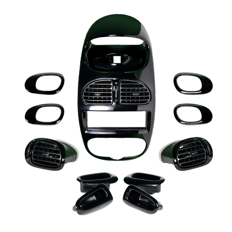 تعداد: تعداد : شامل 12 تیکه دکوراتیو اعم از دستگیره های درب ها و زه دور دستگیره باز شو درب ها، زه دور دریچه های تهویه به همراه شبکه ها و پنل دور ضبط و ساعت